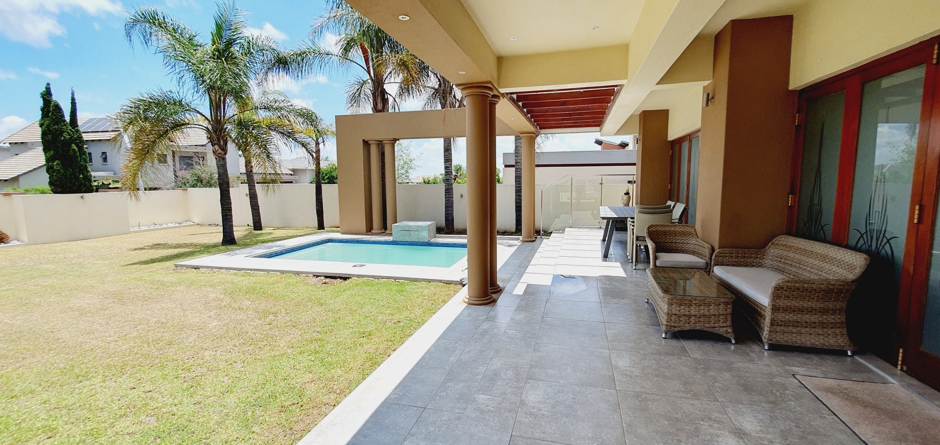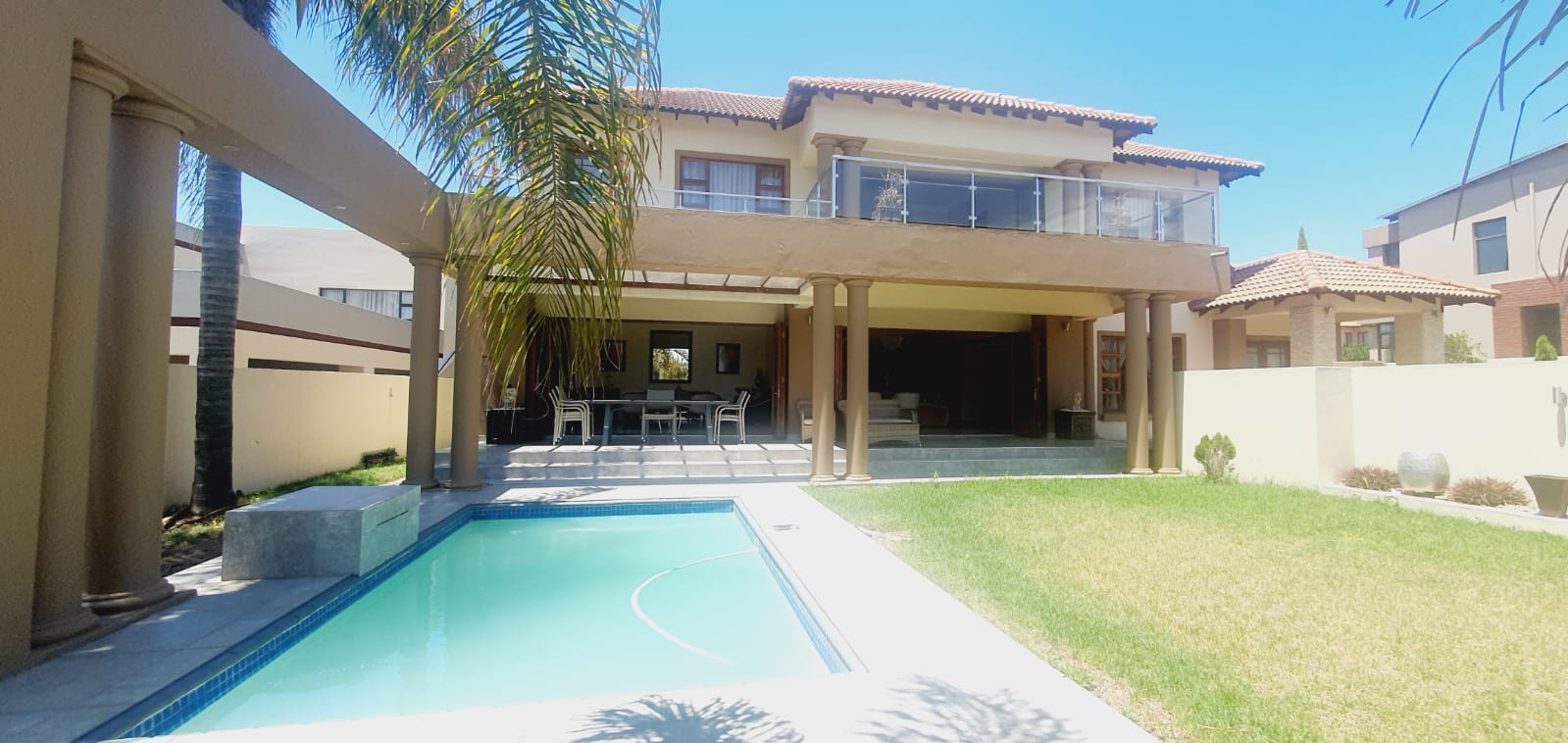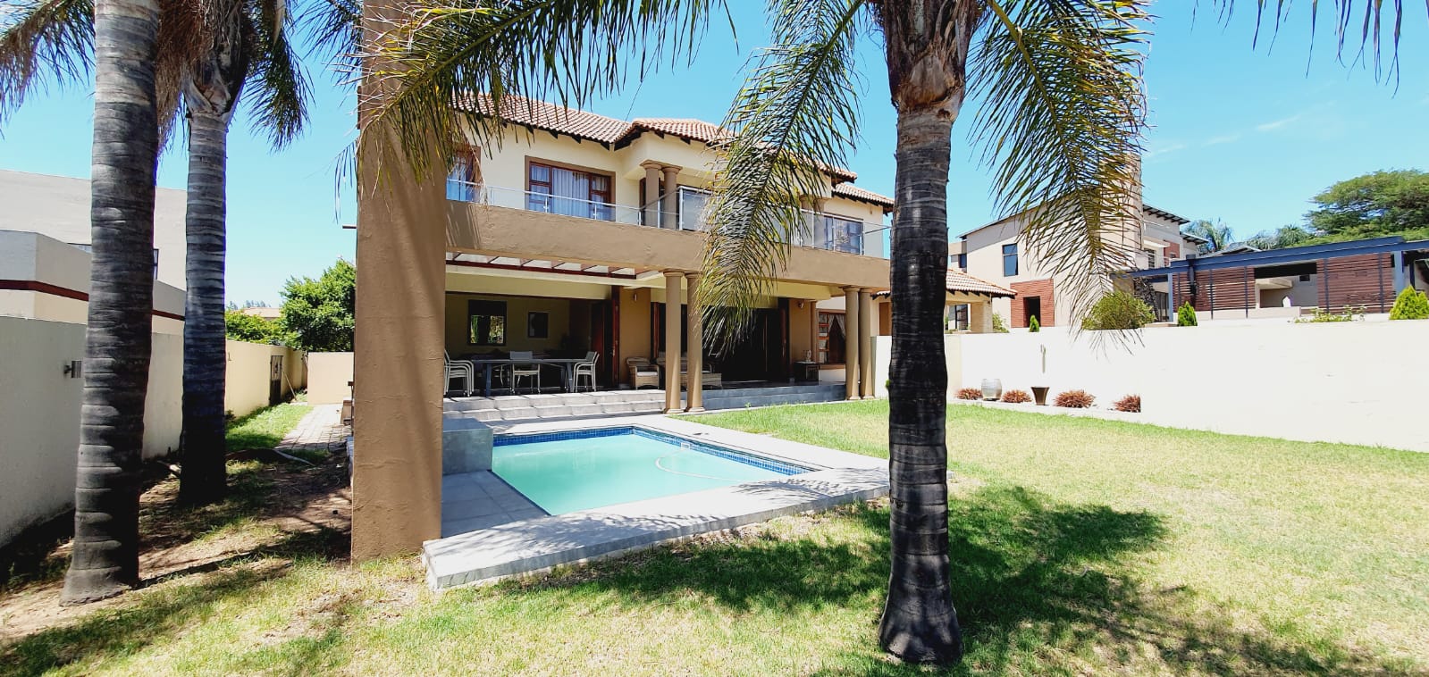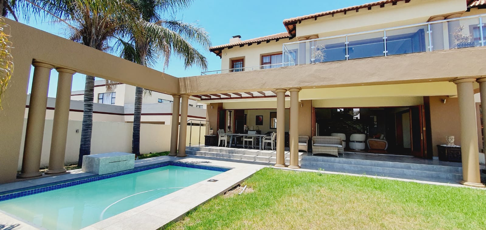 *** Exclusive Mandate *** *** Deposit of R37 000.00 *** *** The following items will be for the use of the tenant during the rental period: -The main bedroom furniture, the pyjama lounge furniture and the fridge. A spacious and well-equipped 4-bedroom open plan home, suitable for a family in Midlands Estate. This well-designed and spacious home has various amenities and a focus on comfort. The open plan design, multiple lounges, and the covered veranda provide versatile living spaces. The kitchen has modern features, and the bedrooms offer privacy and convenience. The outdoor area, featuring a covered area, garden, and swimming pool, adds to the property's overall appeal. The three garages provide ample parking and storage space. Ground Floor: Formal lounge with laminated floors and stack doors opening to a covered veranda. Second lounge with tiled floors. Dining room with tiled floors, open plan with the kitchen. Kitchen with granite tops, space for a double-door fridge, ample cupboard space, gas hob, electric oven, and a separate scullery. Second Floor: Large lounge opening to the balcony. Bedrooms: The main bedroom with laminated floors, a walk-in cupboard, and a full en-suite bathroom. Second bedroom with laminated floors and built-in cupboards. Third bedroom with laminated floors, built-in cupboards, and an en-suite bathroom. Fourth bedroom with built-in cupboards and an en-suite bathroom. Additional Features: Covered veranda overlooking the garden. Swimming pool. Three garages. Midstream Estate offers a lifestyle estate with peace of mind for the entire family. A 2.4m high palisade wall, with electric fencing, surrounds the whole perimeter of the Estates (Midstream, Midfield, Midlands, Midstream Hill, Midstream Ridge, Midstream Meadows, and Midstream Heights). Access control is monitored via bio-metric fingerprints taken at the guard houses at each entrance with CCTV monitoring systems and roaming guards. The area has developed into a fantastic peaceful village with high-quality education: Baby Care, Pre-, Primary, & and one High School, various established churches, various sports and recreational facilities, shopping centres and restaurants, Medi-Clinic (Day Clinics, Frail Care, and Private Hospital) and a Retirement Village. Reach out to arrange a personal viewing and immerse yourself in the splendour and sophistication of this exceptional double-story home. Your dream home may be closer than you think.