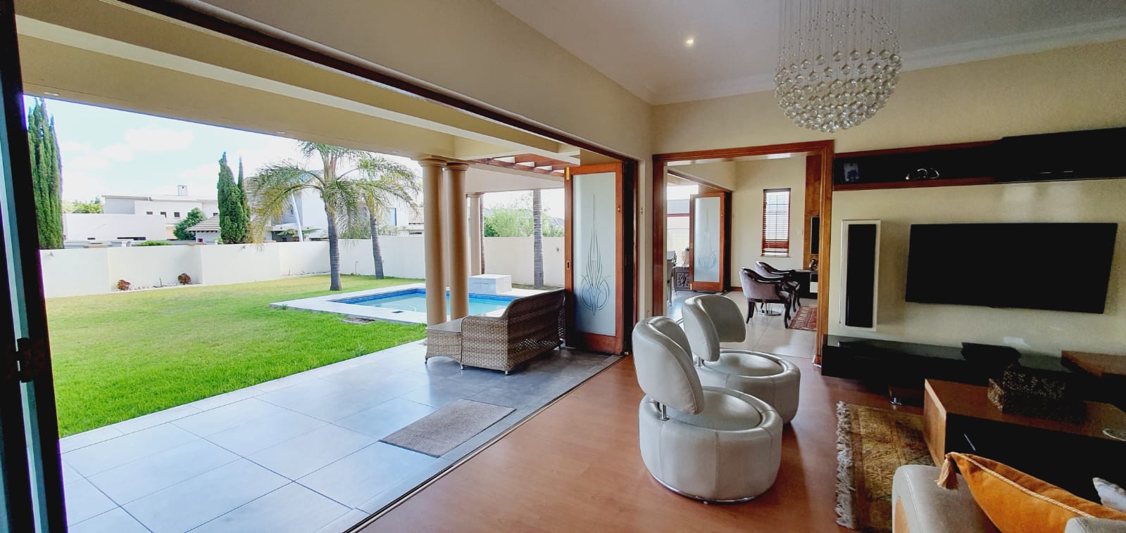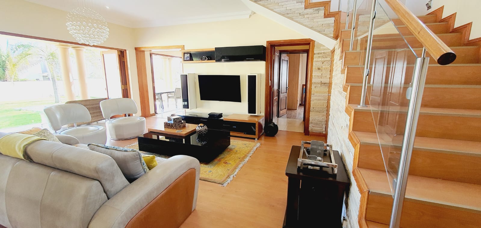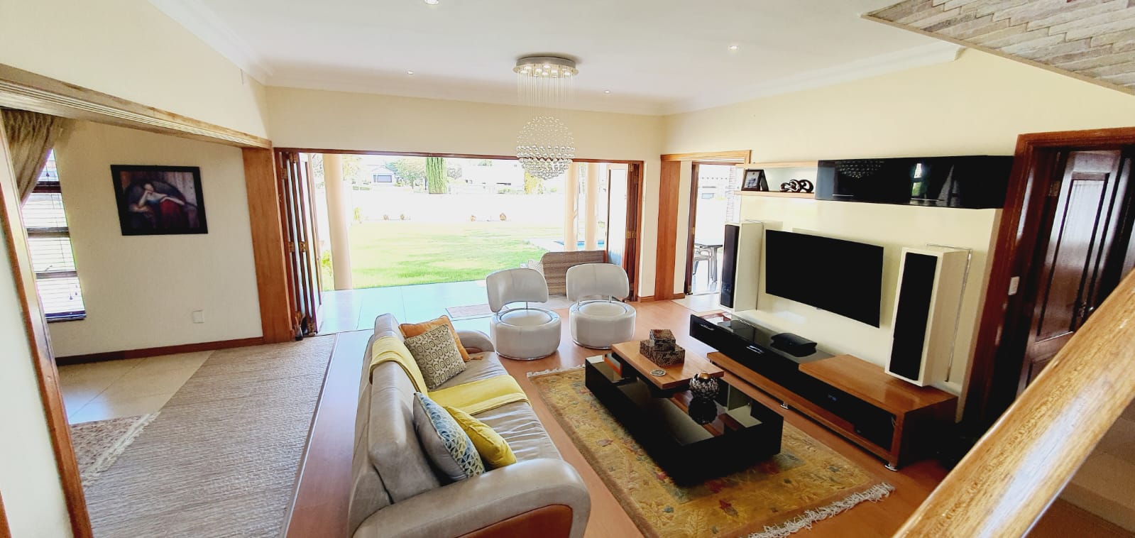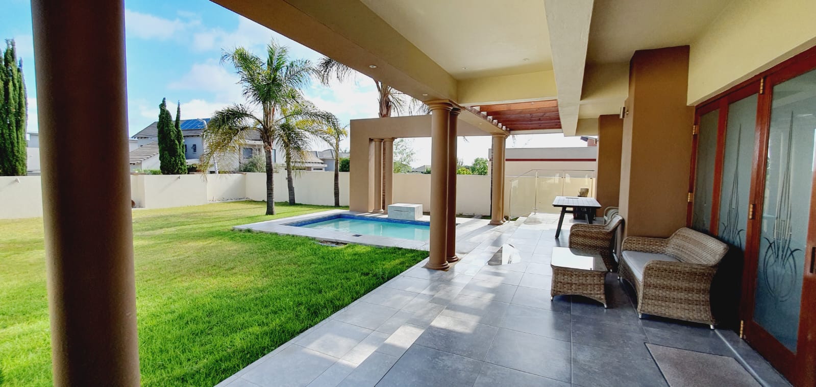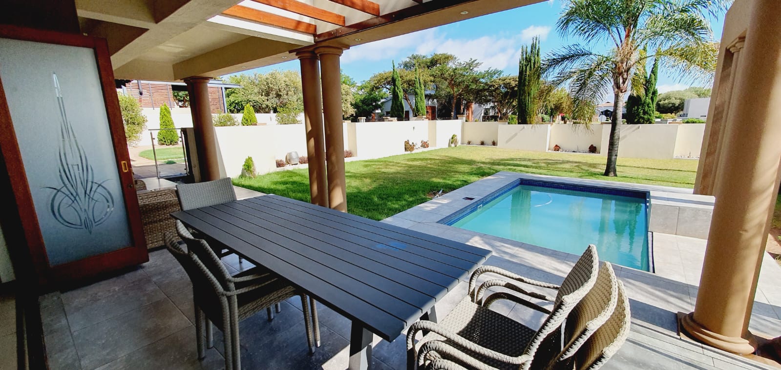 *** Exclusive Mandate *** *** Deposit of R37 000.00 *** *** The following items will be for the use of the tenant during the rental period: -The main bedroom furniture, the pyjama lounge furniture and the fridge. A spacious and well-equipped 4-bedroom open plan home, suitable for a family in Midlands Estate. This well-designed and spacious home has various amenities and a focus on comfort. The open plan design, multiple lounges, and the covered veranda provide versatile living spaces. The kitchen has modern features, and the bedrooms offer privacy and convenience. The outdoor area, featuring a covered area, garden, and swimming pool, adds to the property's overall appeal. The three garages provide ample parking and storage space. Ground Floor: Formal lounge with laminated floors and stack doors opening to a covered veranda. Second lounge with tiled floors. Dining room with tiled floors, open plan with the kitchen. Kitchen with granite tops, space for a double-door fridge, ample cupboard space, gas hob, electric oven, and a separate scullery. Second Floor: Large lounge opening to the balcony. Bedrooms: The main bedroom with laminated floors, a walk-in cupboard, and a full en-suite bathroom. Second bedroom with laminated floors and built-in cupboards. Third bedroom with laminated floors, built-in cupboards, and an en-suite bathroom. Fourth bedroom with built-in cupboards and an en-suite bathroom. Additional Features: Covered veranda overlooking the garden. Swimming pool. Three garages. Midstream Estate offers a lifestyle estate with peace of mind for the entire family. A 2.4m high palisade wall, with electric fencing, surrounds the whole perimeter of the Estates (Midstream, Midfield, Midlands, Midstream Hill, Midstream Ridge, Midstream Meadows, and Midstream Heights). Access control is monitored via bio-metric fingerprints taken at the guard houses at each entrance with CCTV monitoring systems and roaming guards. The area has developed into a fantastic peaceful village with high-quality education: Baby Care, Pre-, Primary, & and one High School, various established churches, various sports and recreational facilities, shopping centres and restaurants, Medi-Clinic (Day Clinics, Frail Care, and Private Hospital) and a Retirement Village. Reach out to arrange a personal viewing and immerse yourself in the splendour and sophistication of this exceptional double-story home. Your dream home may be closer than you think.