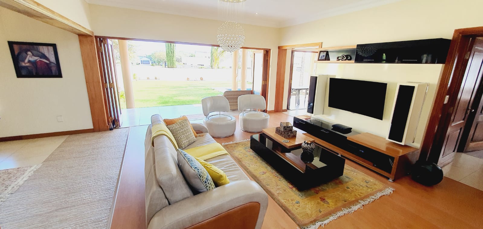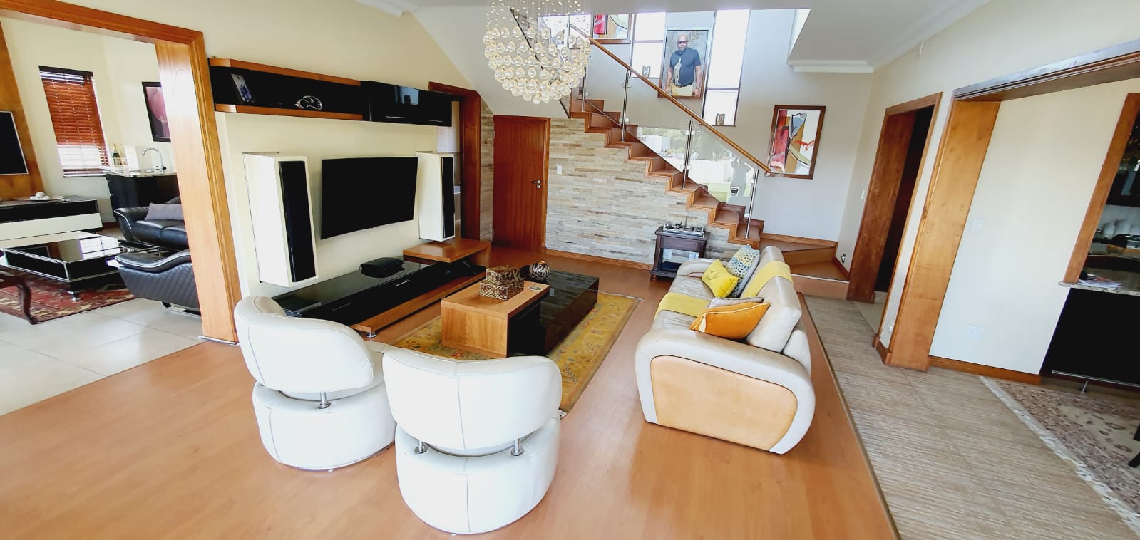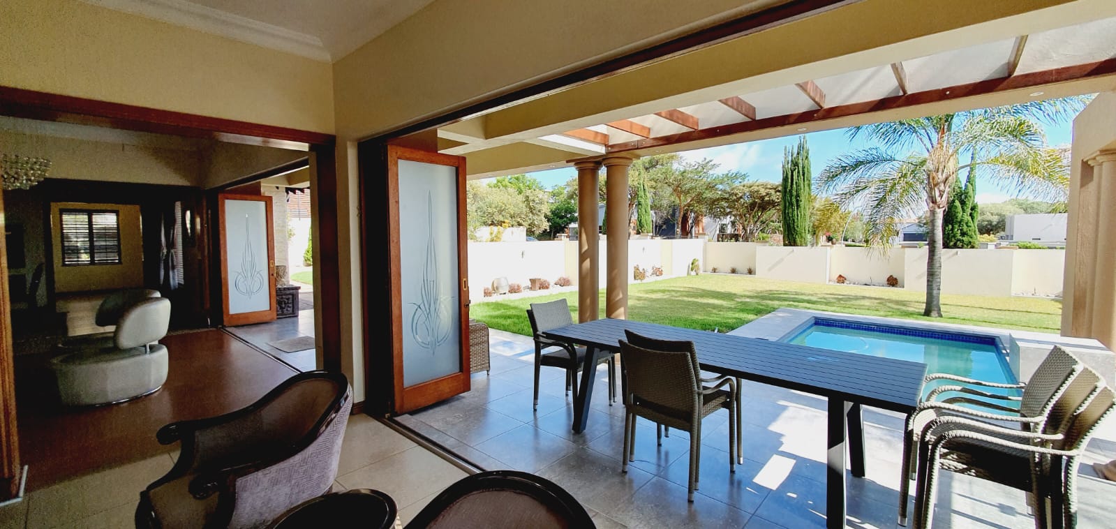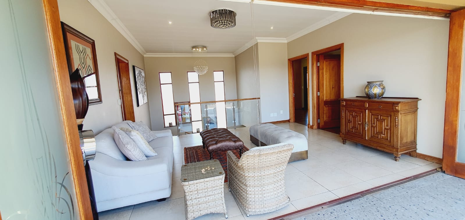 *** Exclusive Mandate *** *** Deposit of R37 000.00 *** *** The following items will be for the use of the tenant during the rental period: -The main bedroom furniture, the pyjama lounge furniture and the fridge. A spacious and well-equipped 4-bedroom open plan home, suitable for a family in Midlands Estate. This well-designed and spacious home has various amenities and a focus on comfort. The open plan design, multiple lounges, and the covered veranda provide versatile living spaces. The kitchen has modern features, and the bedrooms offer privacy and convenience. The outdoor area, featuring a covered area, garden, and swimming pool, adds to the property's overall appeal. The three garages provide ample parking and storage space. Ground Floor: Formal lounge with laminated floors and stack doors opening to a covered veranda. Second lounge with tiled floors. Dining room with tiled floors, open plan with the kitchen. Kitchen with granite tops, space for a double-door fridge, ample cupboard space, gas hob, electric oven, and a separate scullery. Second Floor: Large lounge opening to the balcony. Bedrooms: The main bedroom with laminated floors, a walk-in cupboard, and a full en-suite bathroom. Second bedroom with laminated floors and built-in cupboards. Third bedroom with laminated floors, built-in cupboards, and an en-suite bathroom. Fourth bedroom with built-in cupboards and an en-suite bathroom. Additional Features: Covered veranda overlooking the garden. Swimming pool. Three garages. Midstream Estate offers a lifestyle estate with peace of mind for the entire family. A 2.4m high palisade wall, with electric fencing, surrounds the whole perimeter of the Estates (Midstream, Midfield, Midlands, Midstream Hill, Midstream Ridge, Midstream Meadows, and Midstream Heights). Access control is monitored via bio-metric fingerprints taken at the guard houses at each entrance with CCTV monitoring systems and roaming guards. The area has developed into a fantastic peaceful village with high-quality education: Baby Care, Pre-, Primary, & and one High School, various established churches, various sports and recreational facilities, shopping centres and restaurants, Medi-Clinic (Day Clinics, Frail Care, and Private Hospital) and a Retirement Village. Reach out to arrange a personal viewing and immerse yourself in the splendour and sophistication of this exceptional double-story home. Your dream home may be closer than you think.